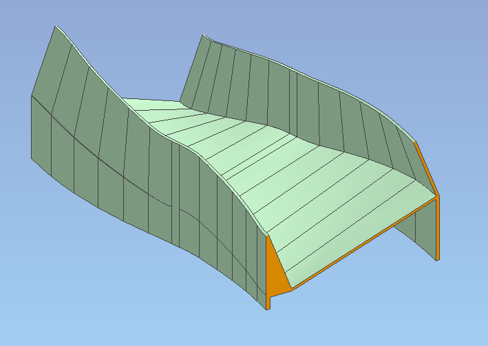 コースは3Dプリンターを使用しています。経路計算(XY座標とバンク角)をもとにコースの断面座標を計算し、3Dデータ(STEP)として出力します。3Dデータ生成にはOCCT(Open Cascade Technology)ライブラリを使ったプログラムで、NURBS曲面のソリッドモデルのSTEPとして書き出します。後は、CAD(iCAD SX)に取り込み、3Dプリンターで出力できるサイズに切り分けます。コースが曲がりくねっているため3Dプリンターの出力方向に合わせて分割するのに苦労しました。